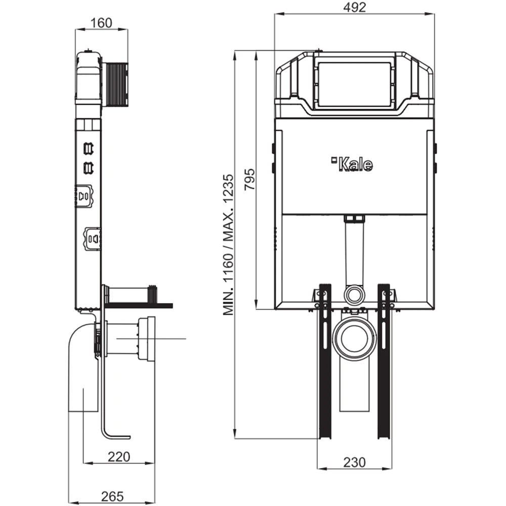 Kale Triton 2.5/4L Duvar içi Metal Ayaklı Gömme Rezervuar