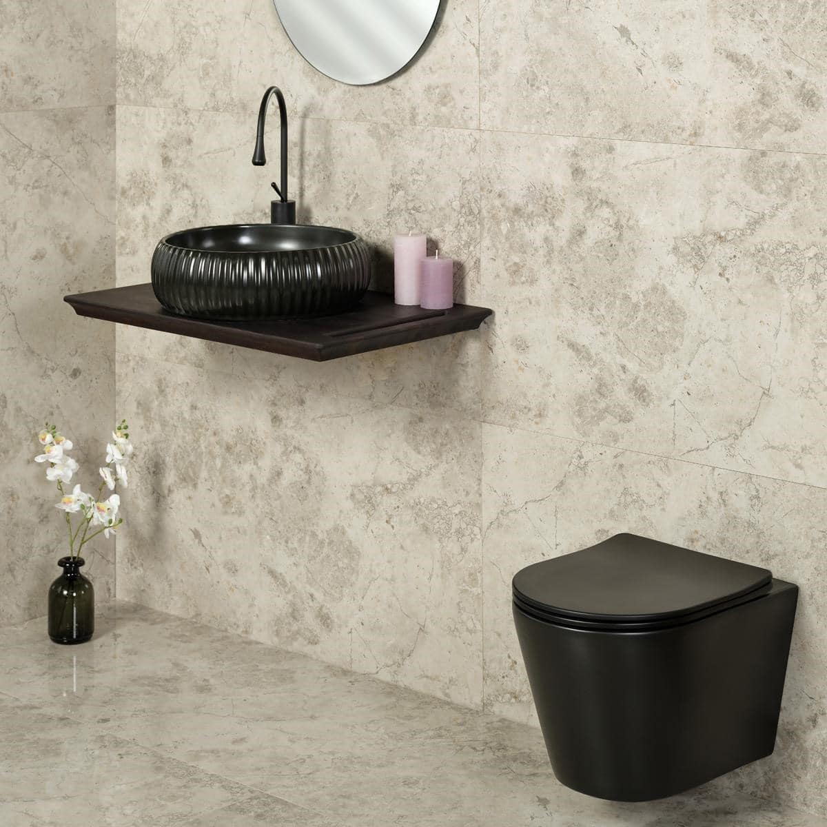 Bocchi V-Tondo Rimless Gizli Taharet Girişli Asma Klozet Mat Siyah