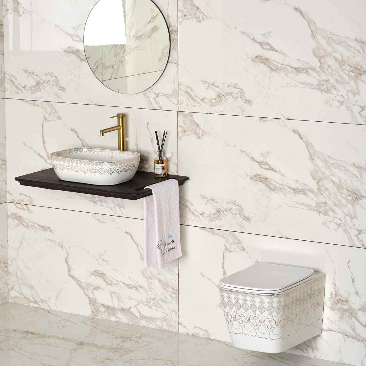 Lena EY-7033 Tezgah Üstü Lavabo Beyaz & Altın