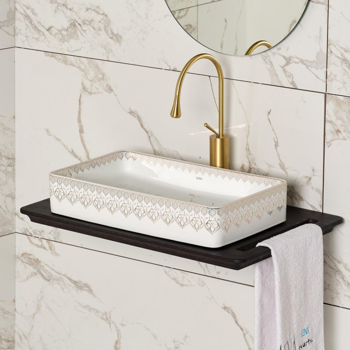 Lena EY-7034 Tezgah Üstü Lavabo Beyaz & Altın
