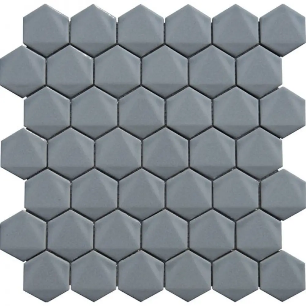 Pukka Tile Koyu Gri 3D Hexagon Porselen Mozaik