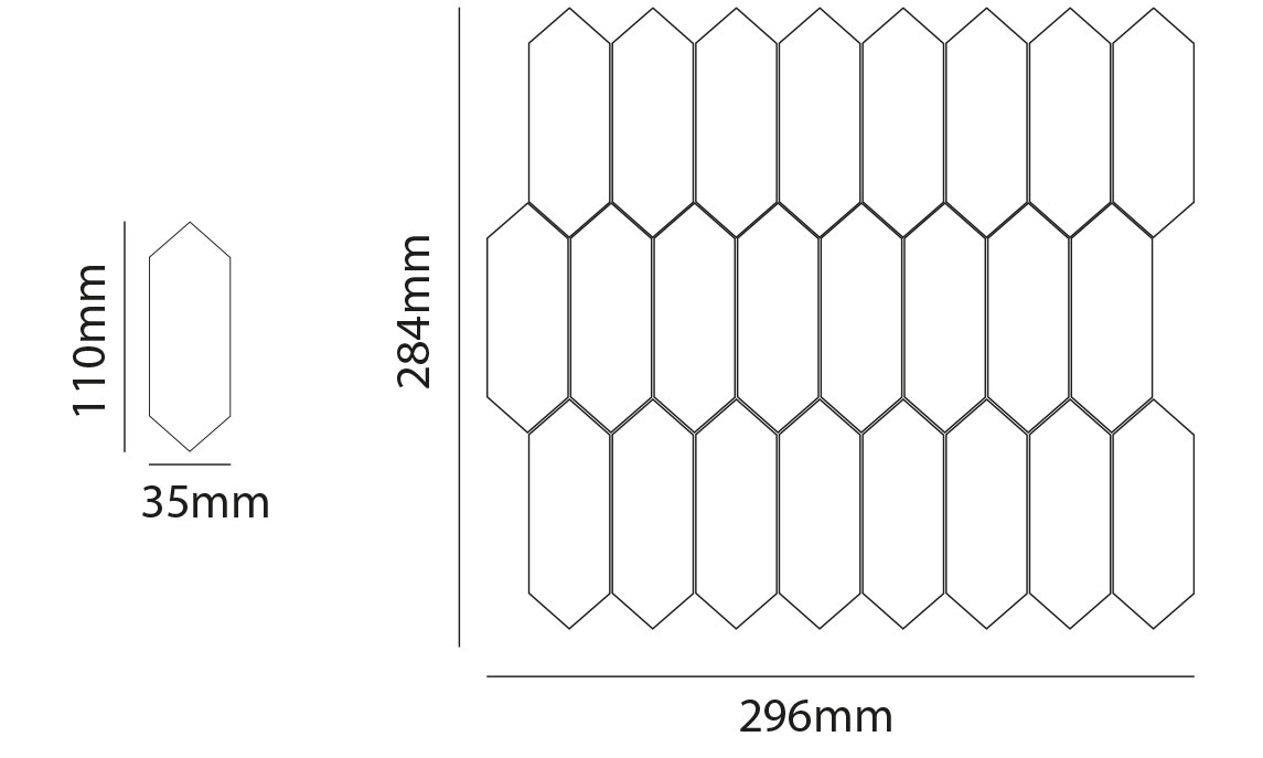 Pukka Tile Gri Blend Small Picket Porselen Mozaik