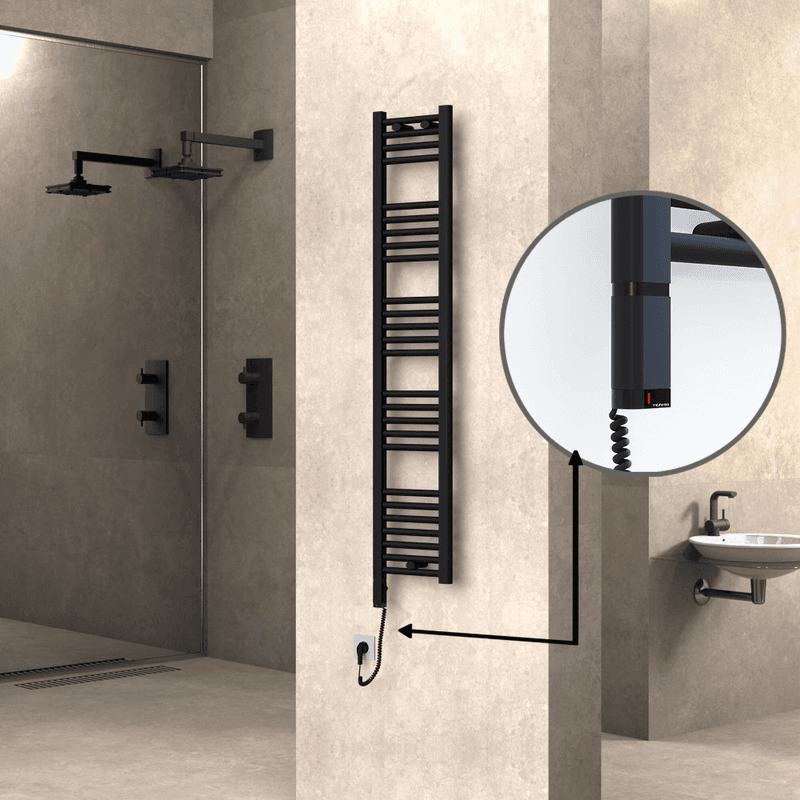 Radiva Haiti Elektrikli Havlupan 300×1500 Düz Siyah Mat (OneD On/Off ) Sol 300 Watt