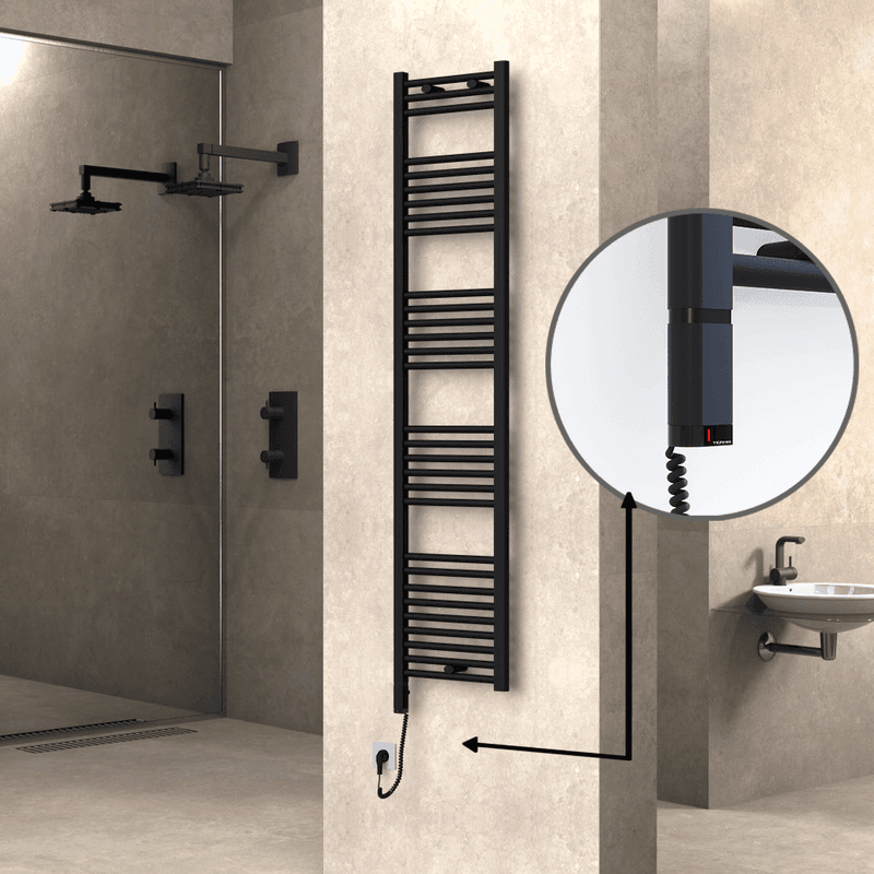 Radiva Haiti Elektrikli Havlupan 400×1800 Düz Siyah Mat (OneD On/Off ) Sol 600 Watt