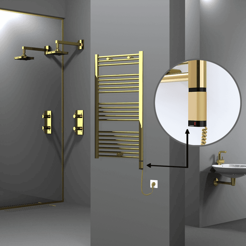 Radiva Haiti Elektrikli Havlupan 600×1100 Düz Altın Parlak (OneD On/Off ) Sağ 300 Watt