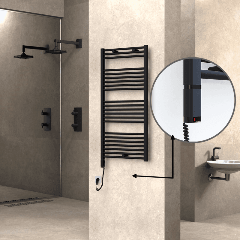 Radiva Haiti Elektrikli Havlupan 600x1100 Düz Siyah Mat (OneD On/Off ) Sol 600 Watt