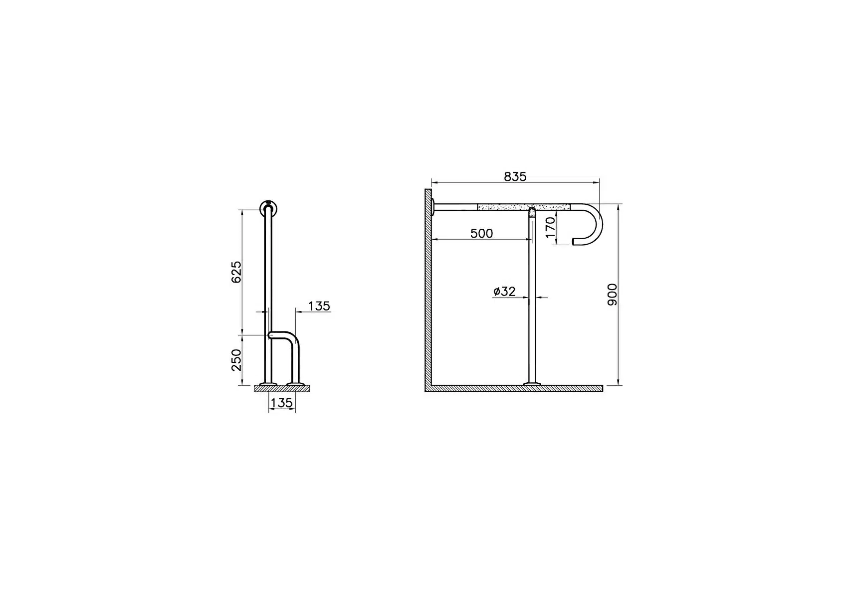 Kale Asistans 90° Açılı Tutunma Barı (Duvara Entegre)