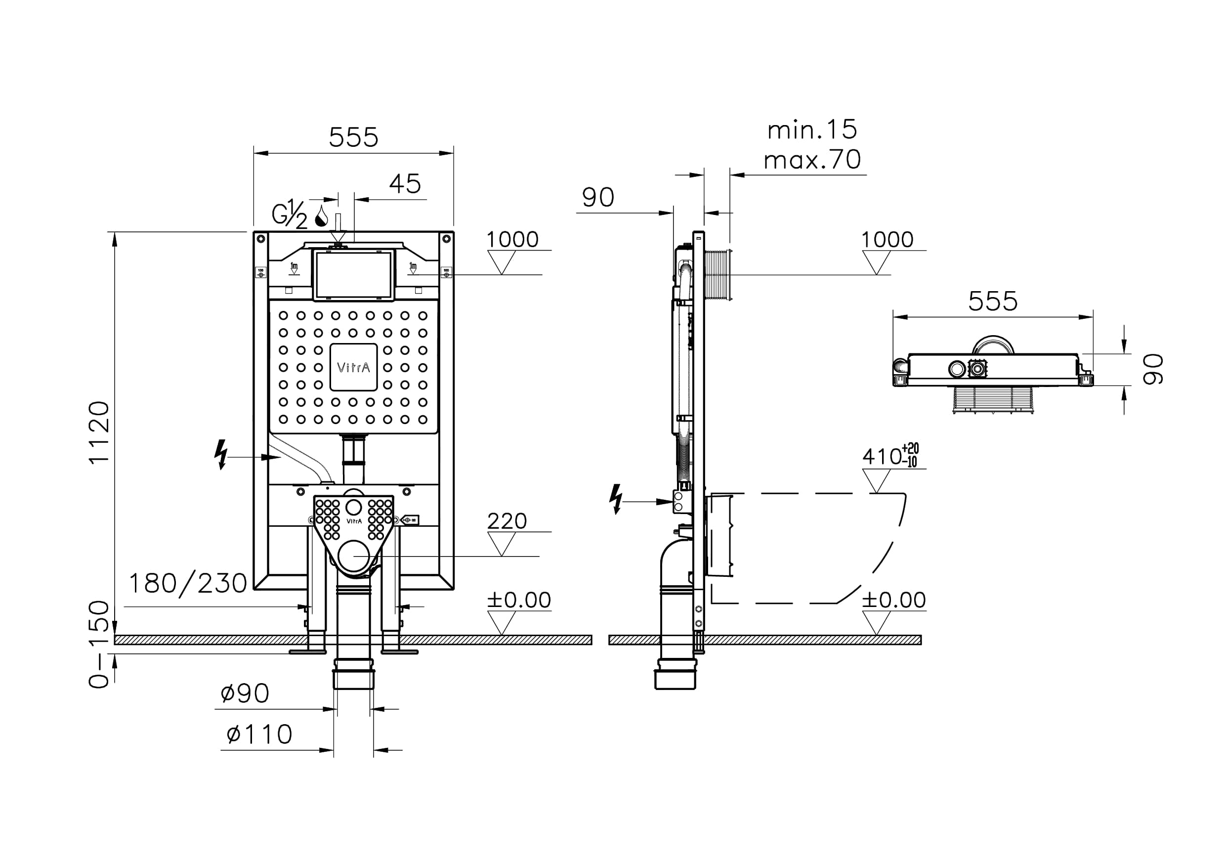 Vitra Asma klozetler için karkas veya profil sistemlere montaj alçıpan uygulama, 3/6 L (9 cm Gider Genişliği)