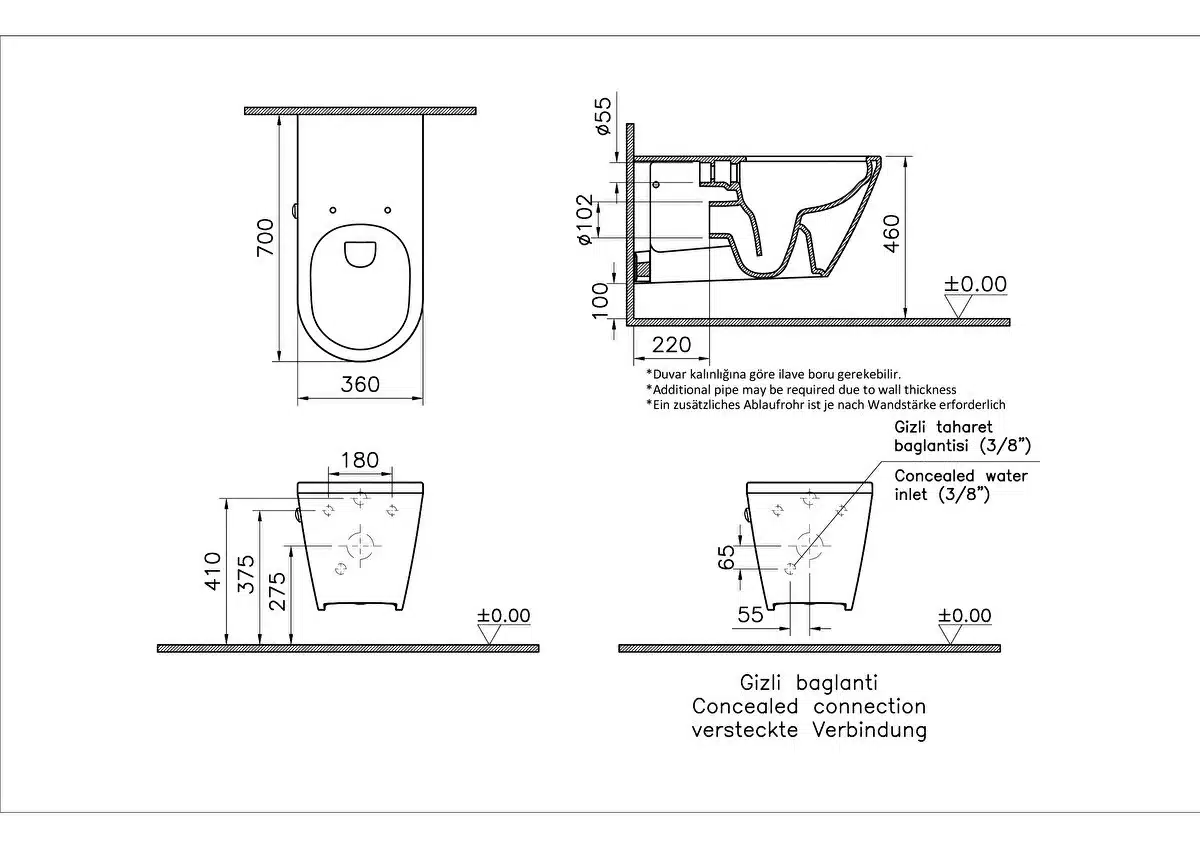 Bocchi Etna Gizli Taharet Girişli Asma Klozet Mat Beyaz
