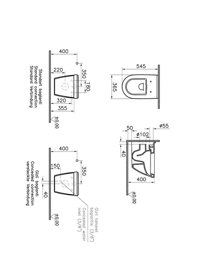 Bocchi Etna Gizli Taharet Girişli Asma Klozet Mat Kaşmir