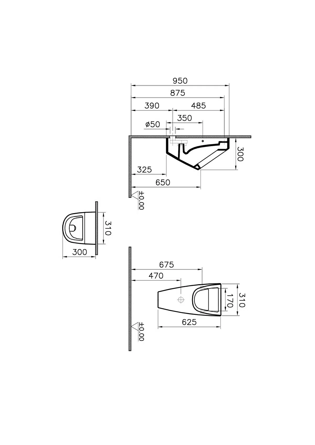 Bocchi Taormina Arch Arkadan Su Girişli Pisuvar Mat Yasemin