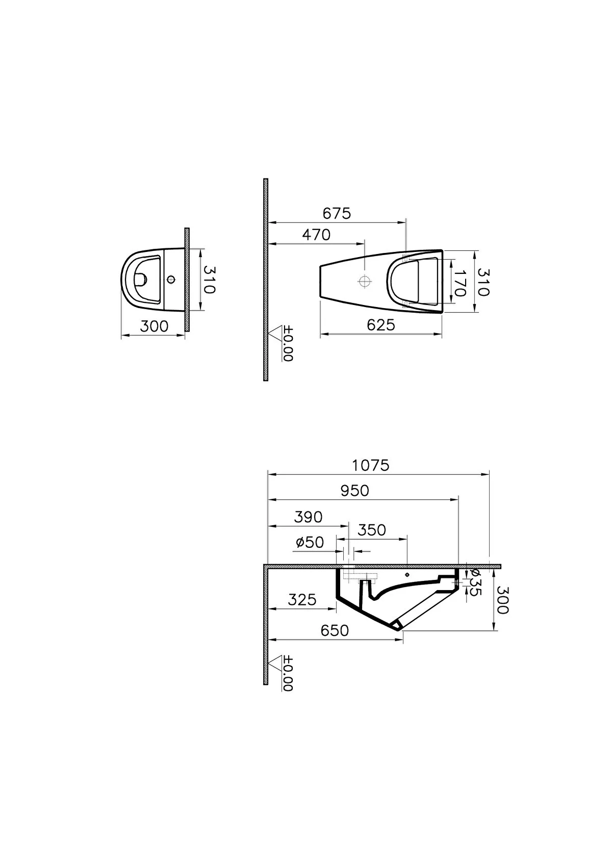 Bocchi Taormina Arch Arkadan Su Girişli Pisuvar Mat Yasemin