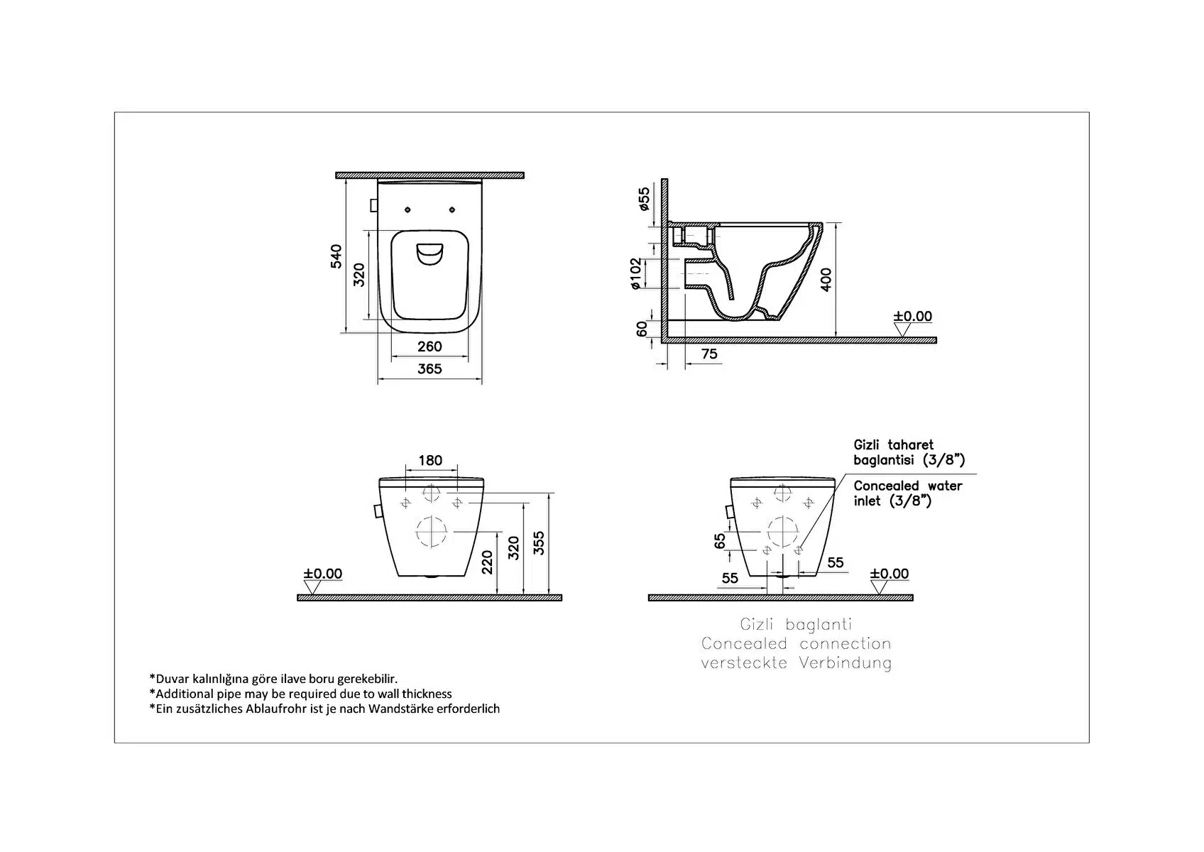 Bocchi Etna Gizli Taharet Girişli Asma Klozet Mat Kaşmir