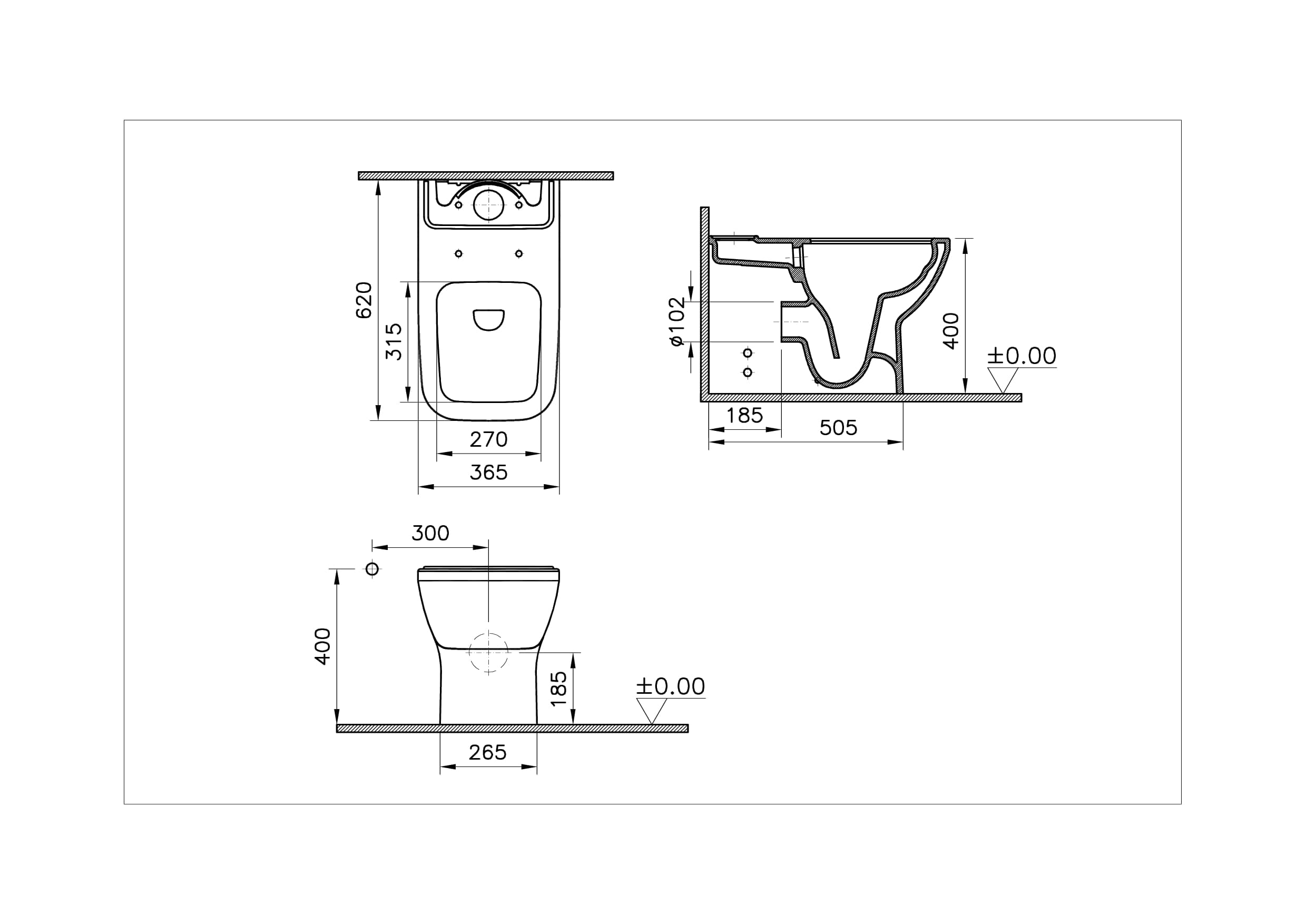 Vitra Integra Square Takım Klozet Rim-ex, Duvara Tam Dayalı, 62 cm Taharet Borulu, Taharet Borusu Girişi Sıva Altı Uygulamalı, Beyaz