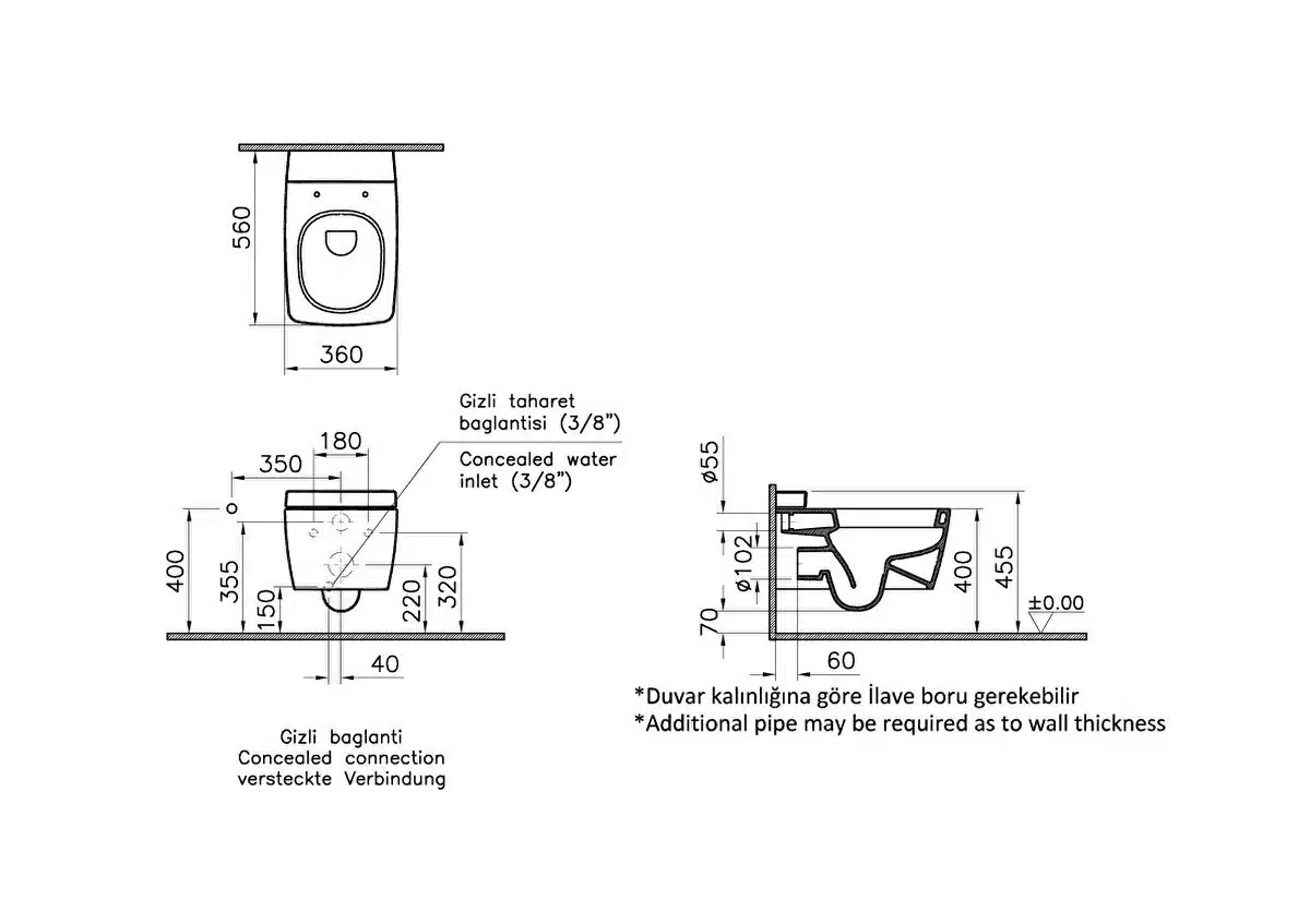 Bocchi Etna Gizli Taharet Girişli Asma Klozet Mat Kaşmir