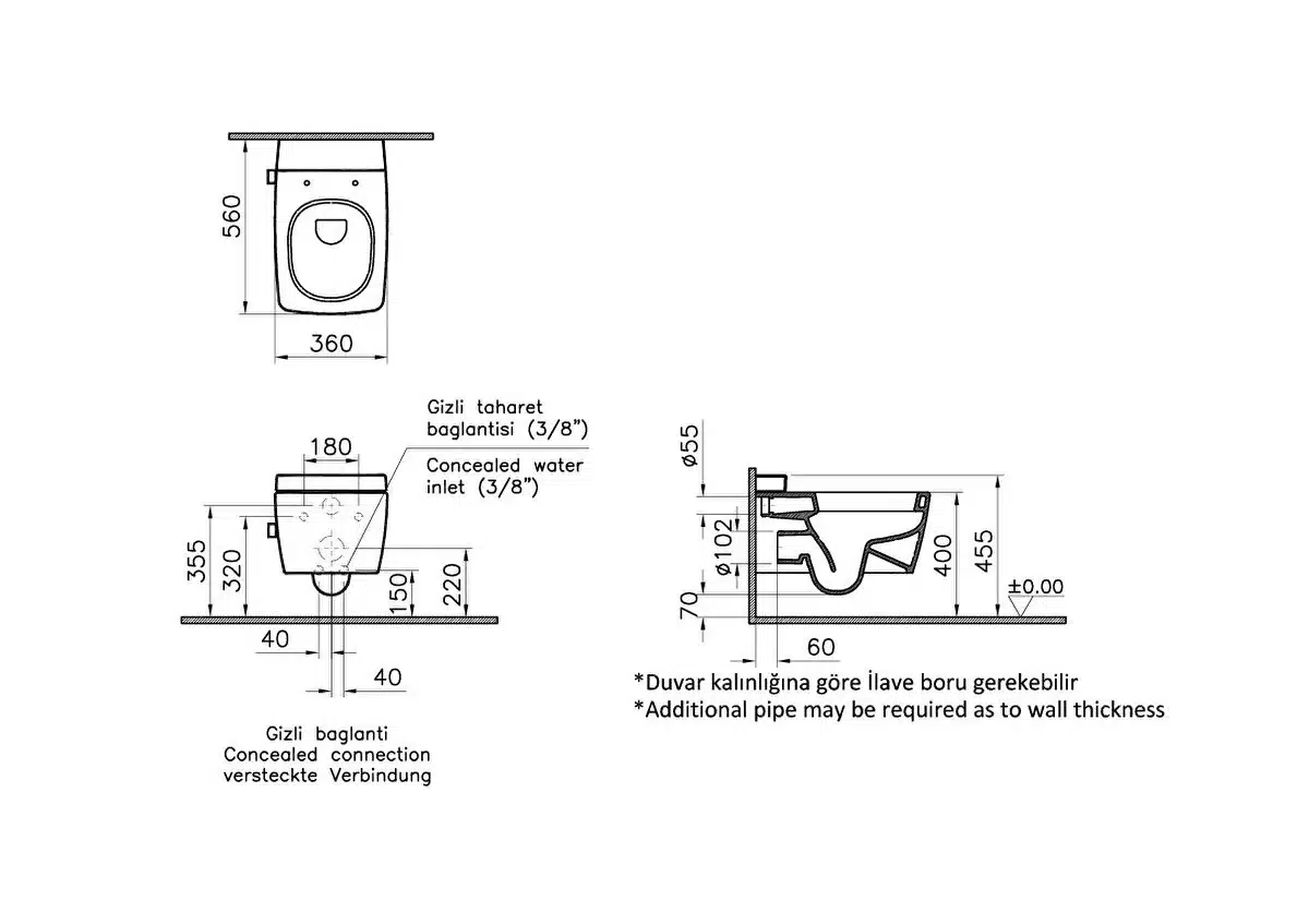 Bocchi Etna Gizli Taharet Girişli Asma Klozet Mat Kaşmir