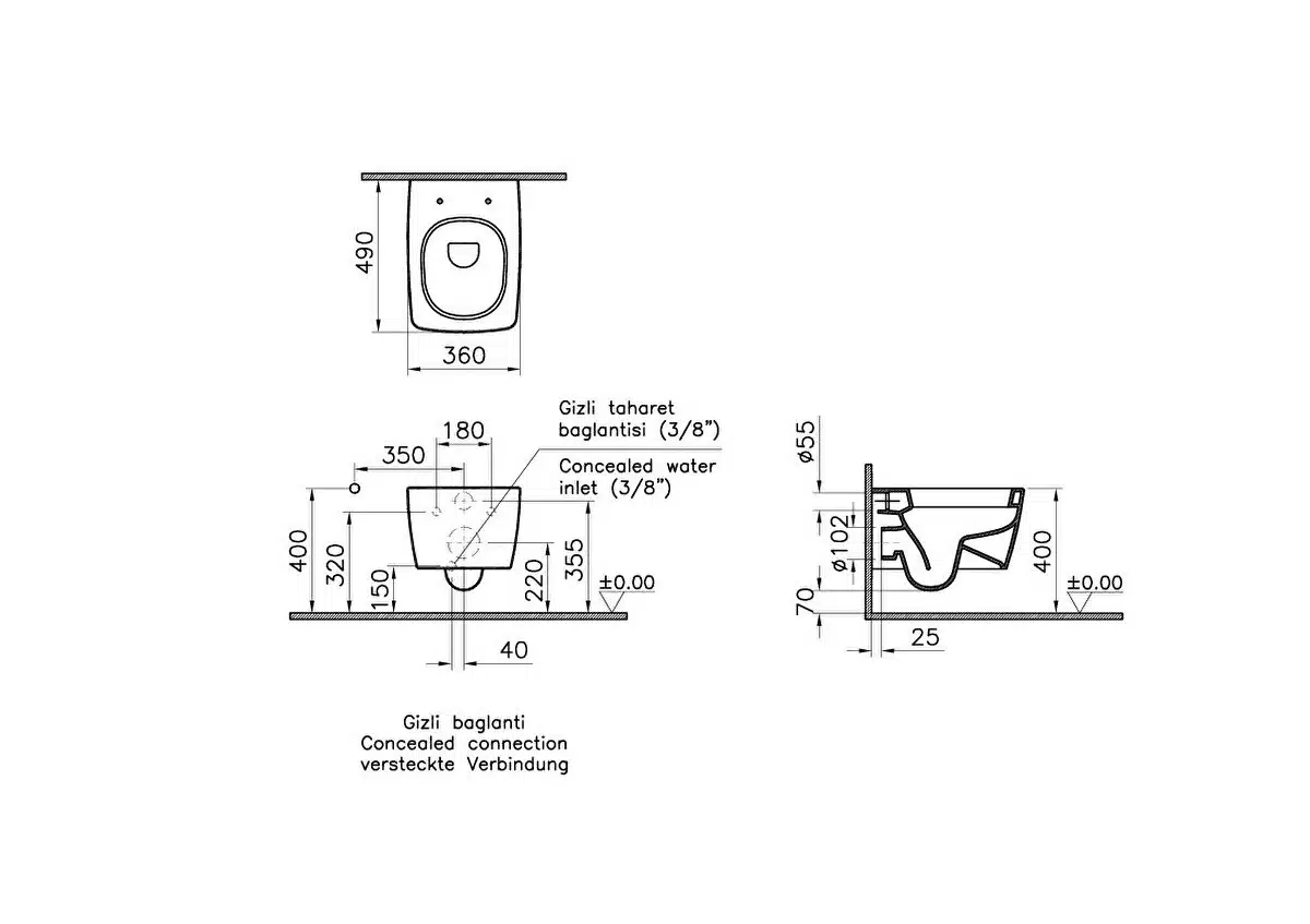Bocchi V-Tondo Rimless Gizli Taharet Girişli Asma Klozet Mat Antrasit