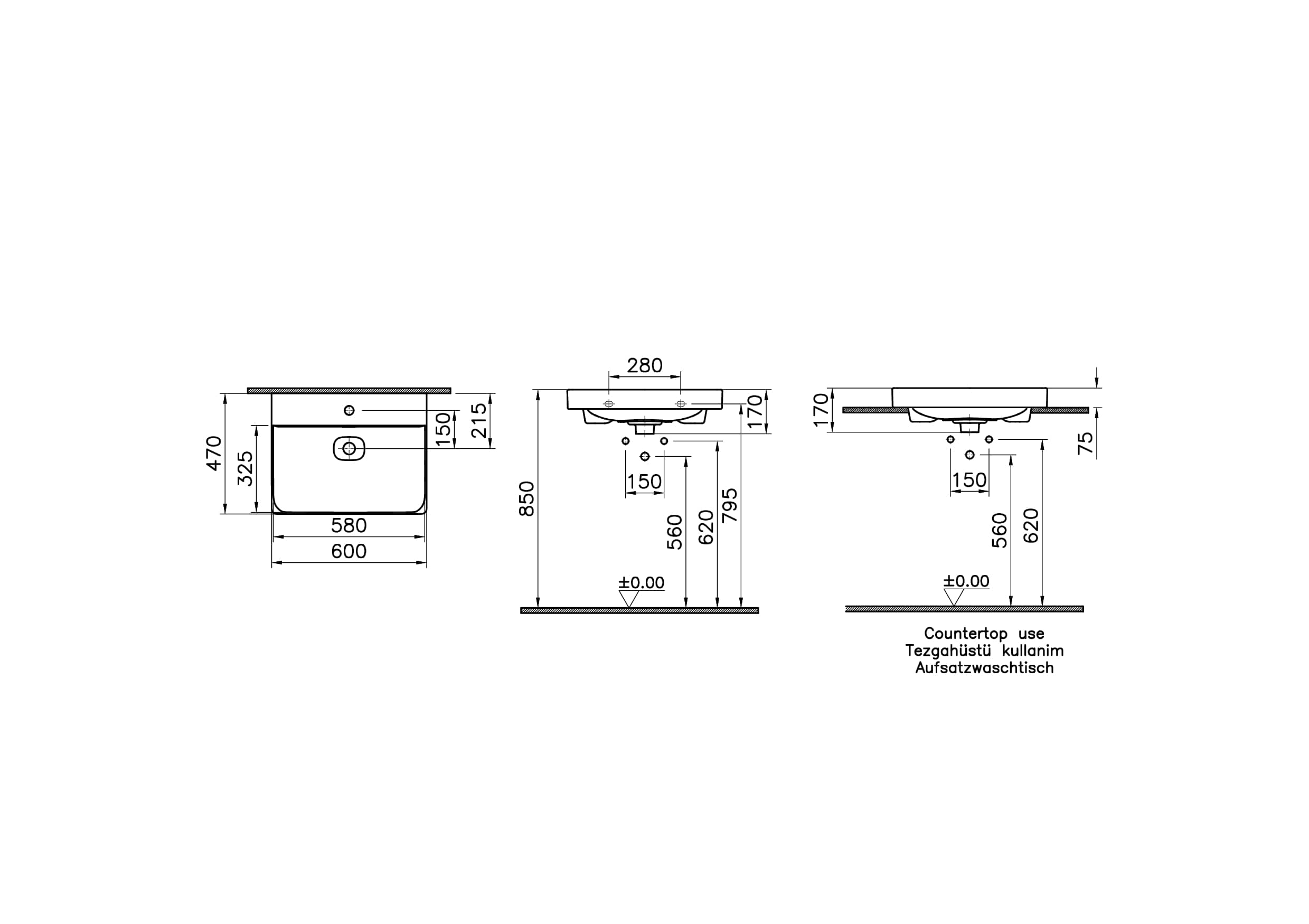 Vitra Metropole Çanak Lavabo 60x47 cm Tek Armatür Delikli, Su Taşma Deliksiz, Beyaz