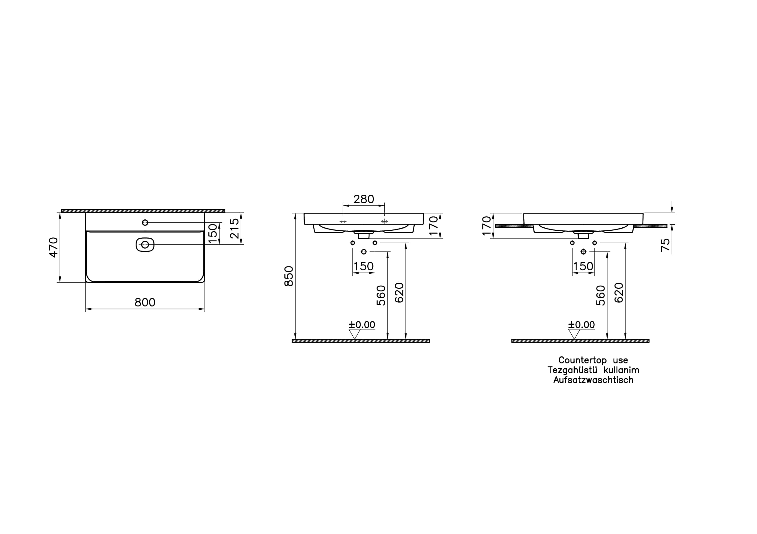 Vitra Metropole Çanak Lavabo 80×47 cm Tek Armatür Delikli, Su Taşma Deliksiz, Beyaz