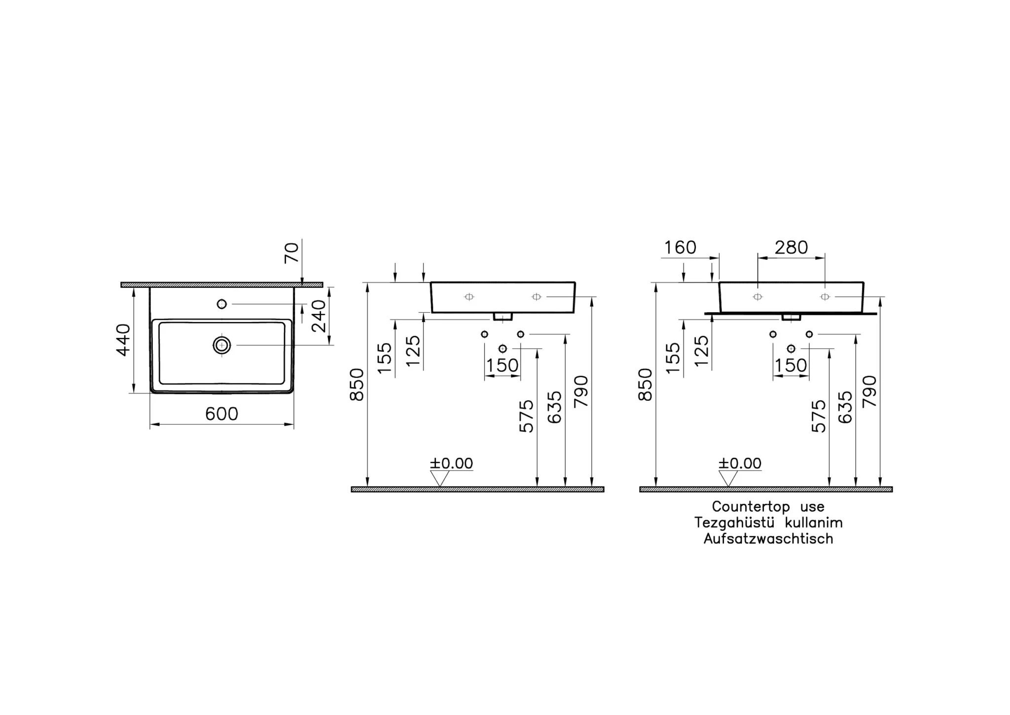 Vitra Zentrum 55 cm Beyaz Standart Lavabo