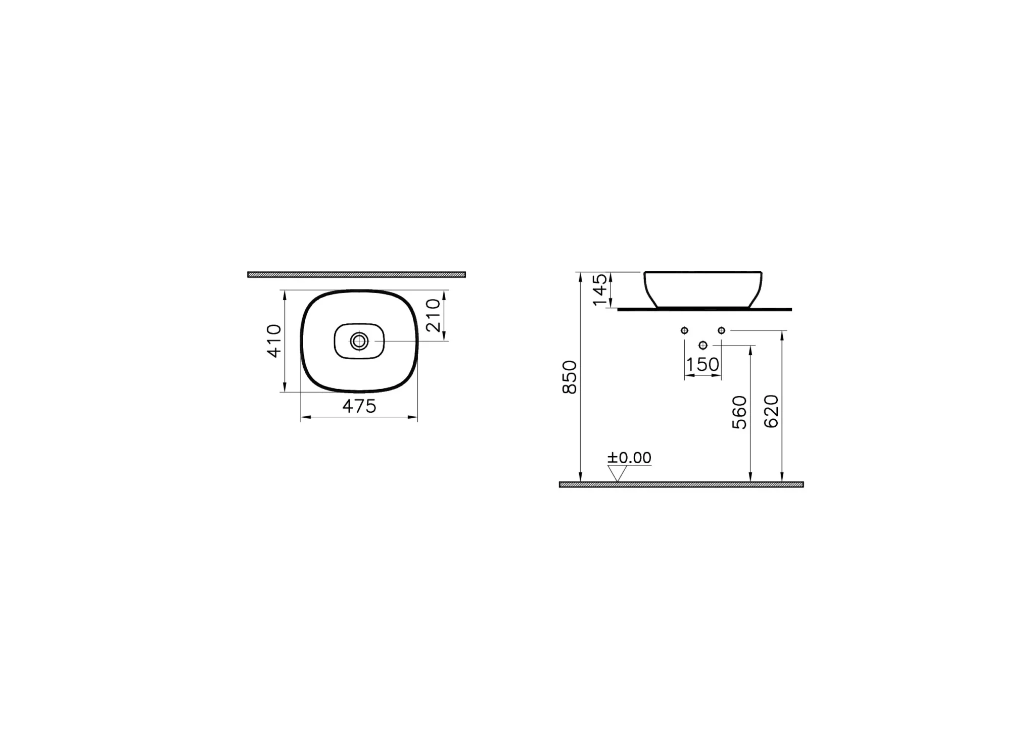 Vitra Outline 48 cm Mat Beyaz Çanak Lavabo