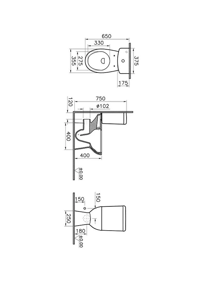 Vitra S50 Takım Klozet Duvara Tam Dayalı, Kompakt, 60 cm Taharet Borulu, Beyaz