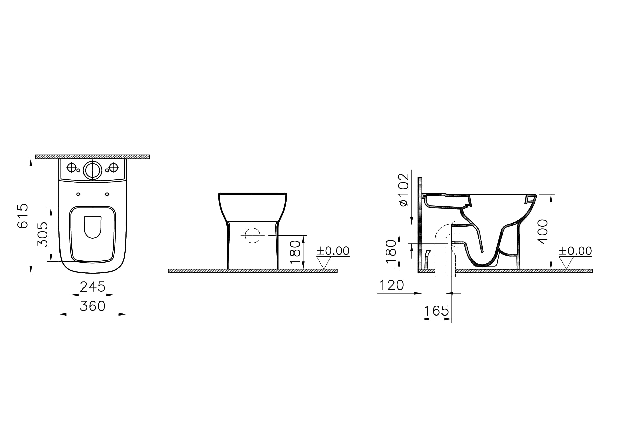 Vitra Zentrum Square Takım Klozet SmoothFlush, Arkası Açık, 63 cm Taharet Borulu, Beyaz