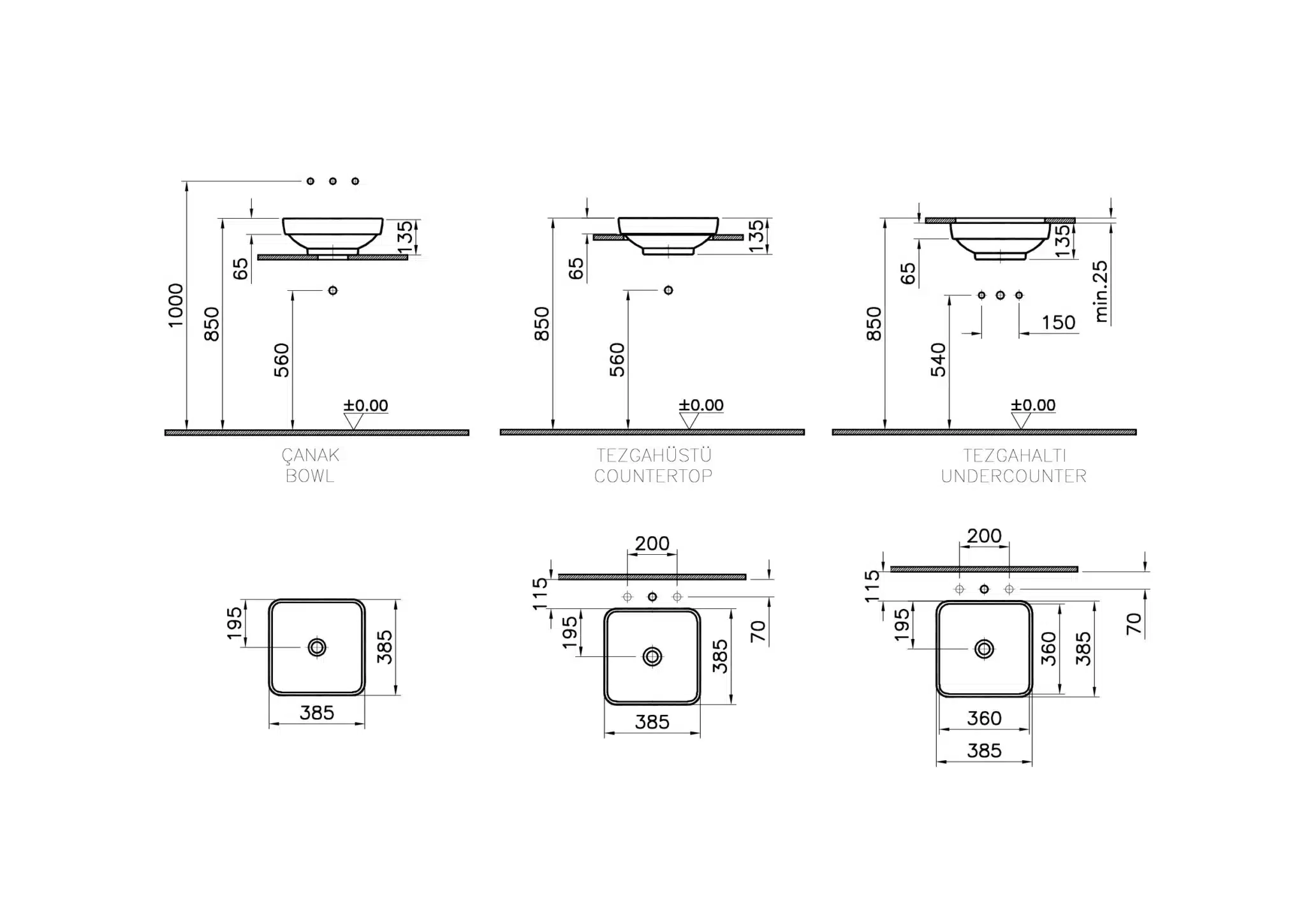 Bocchi Venezia Çanak Lavabo 56 cm Mat Beyaz