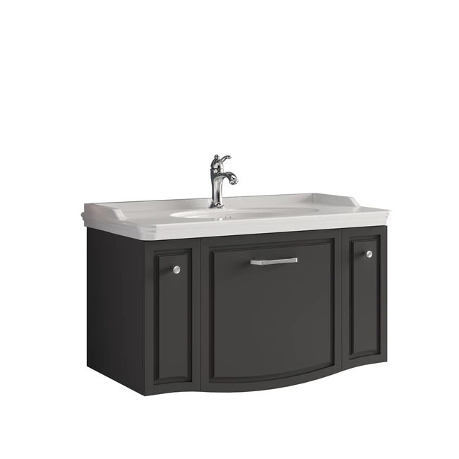 Kale Arte+ Lavabo Dolabı 100 cm Mat Antrasit Krom (Lavabo Dahil)